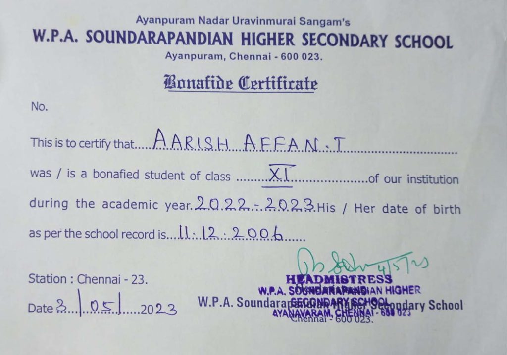 Aarish Affan T is a student of XI class at W.P.A Soundarapandian Higher Secondary School in Ayapuram, Chennai. Despite facing financial struggles, Aarish is determined to continue his education and build a better future for himself and his family. Unfortunately, due to his family’s financial situation, Aarish has accumulated school fee dues of up to ₹26,000, making it difficult for him to continue his studies.